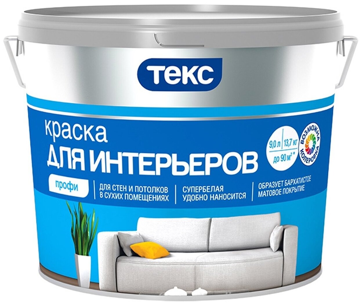 Текс Интерьерная краска в/д (9л) профи / текс Для интерьеров краска для стен и потолков в сухих помещениях (9л) класс профи