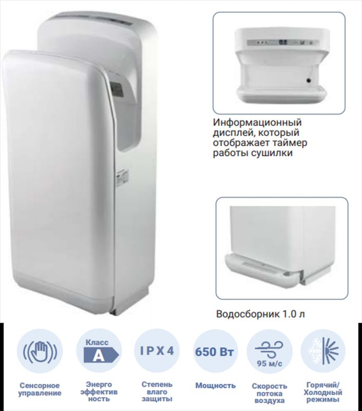 Сушилка для рук электрическая 0,8/1,9 кВт BXG-JET-7000 интересное: