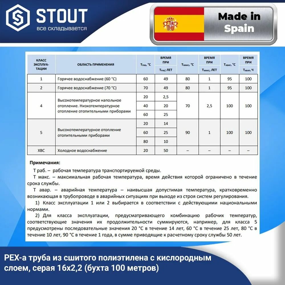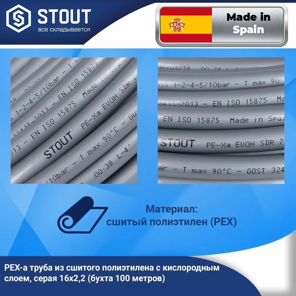 SPX-0001-001622 STOUT 16х2,2 (бухта 100 метров) PEX-a труба из сшитого полиэтилена с кислородным слоем, серая