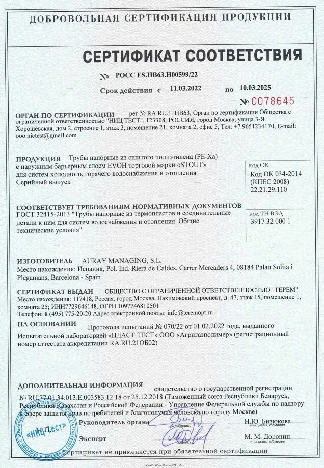 STOUT SPX-0001-241622 16x2,2 бухта 240 метров PEX-a труба из сшитого пол. RG008Q0THCPVR5