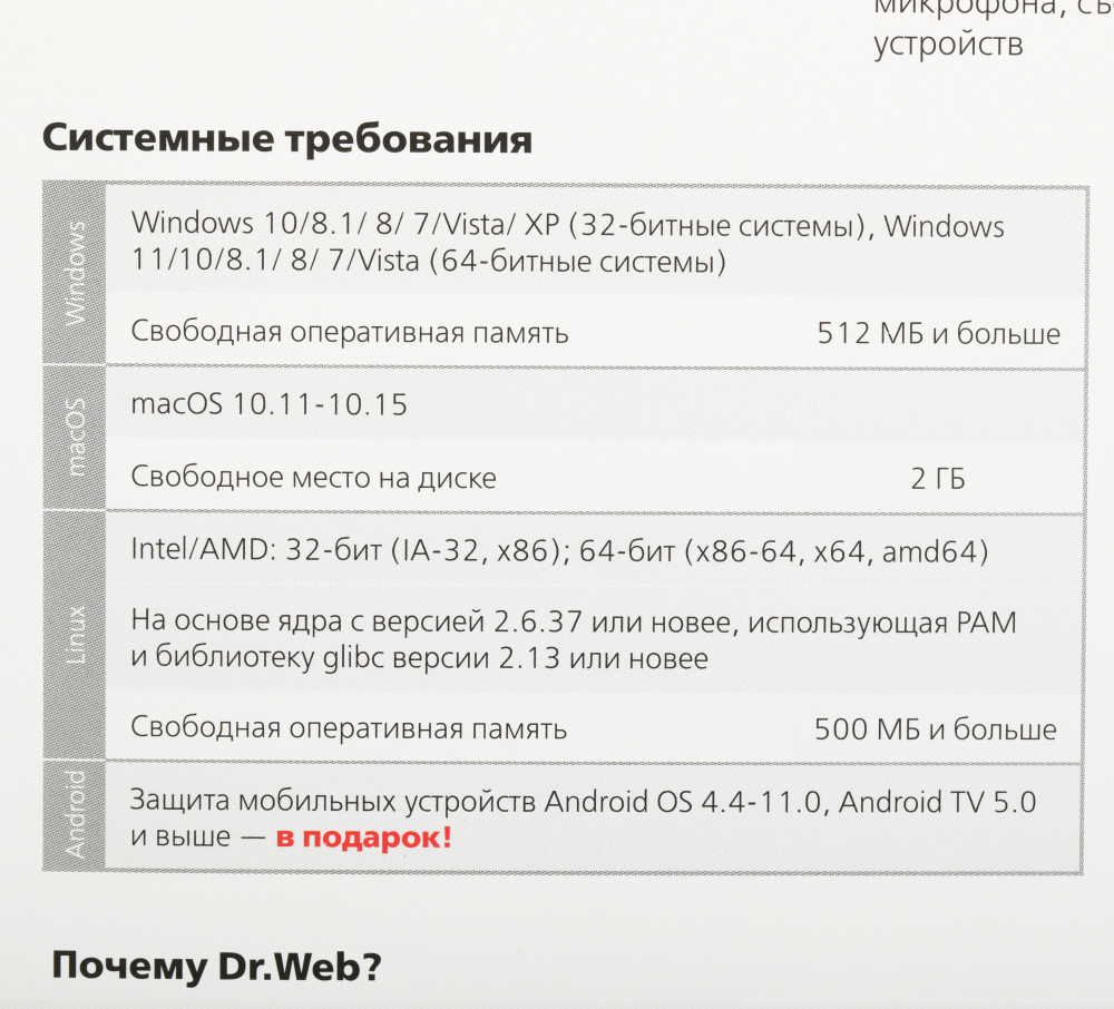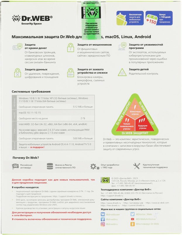 | Отзыв: | Пользовался несколько лет. Затем по работе пришлось пользоваться GoogleDrive приложением для более удобной синхронизации из-за большого количества файлов. DrWeb блокирует Google Drive и при этом не собирается ничего делать для обеспечения совместной работы. Теперь осталась лицензия только у отца, ну и так он привык и ему нравится то и продлеваю периодически, но особого смысла не вижу. Не хочу обсуждать политику drweb, но те, кто сейчас пользуется GoogleDrive имейте в виду либо google, либо drweb. Мне сейчас еще лучше, так как не пользуюсь ни тем, ни другим) |