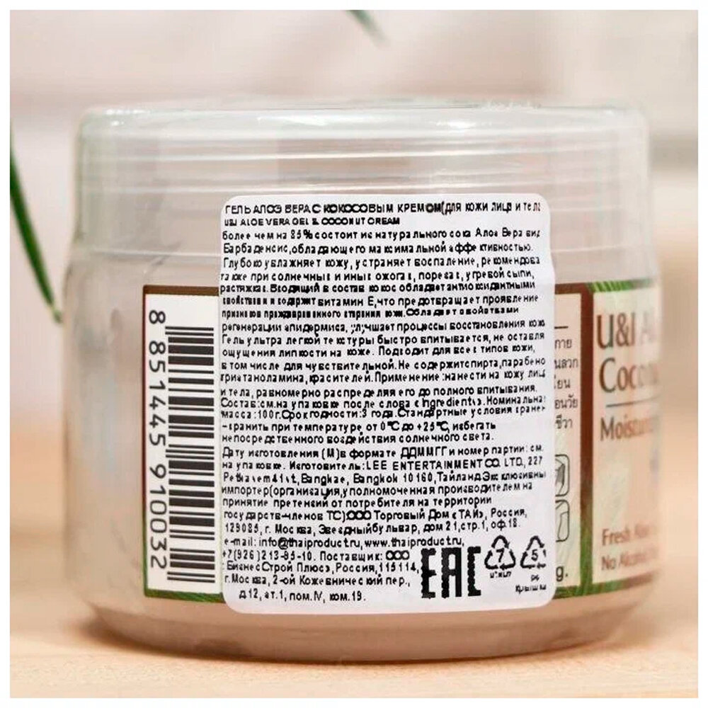 Таиланд U&I Гель алоэ вера с кокосовым кремом для кожи лица и тела, 60 гр