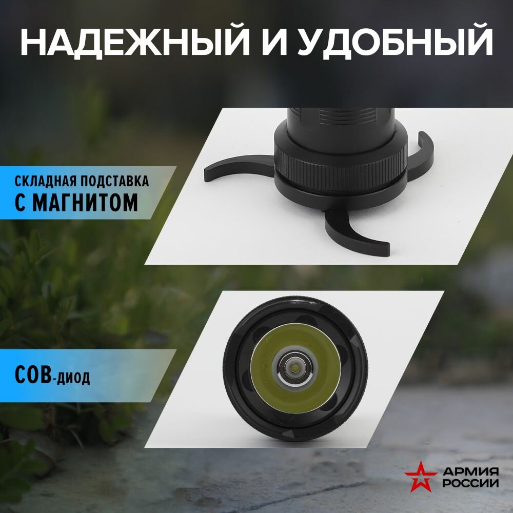 Купить Фонарь светодиод универсальный Буря 5Вт LED+COB светильник, алюм, рег фокус, диммер, 4xAA MB-902 Армия России (1/10/20)