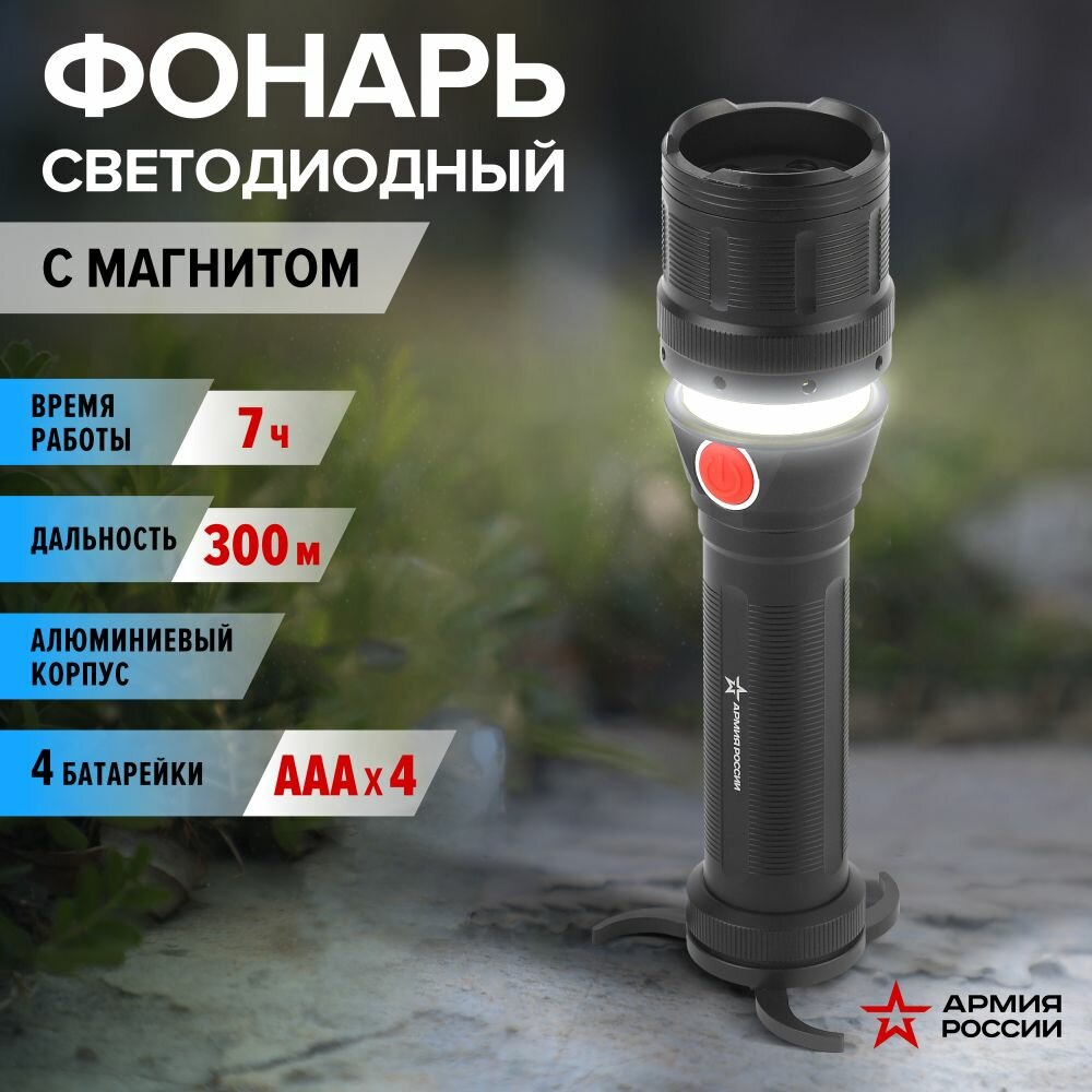 Фонарь Армия России MB-902 Буря [5Вт LED + COB светильник, алюминий, диммер, 4xAA)