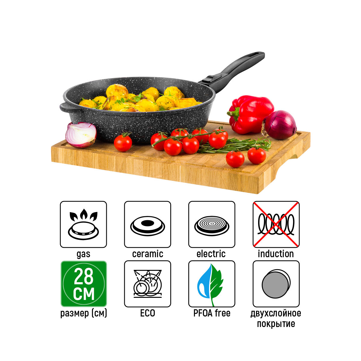 Сковорода глубокая, 28 см гранит, без крышки съемная ручка