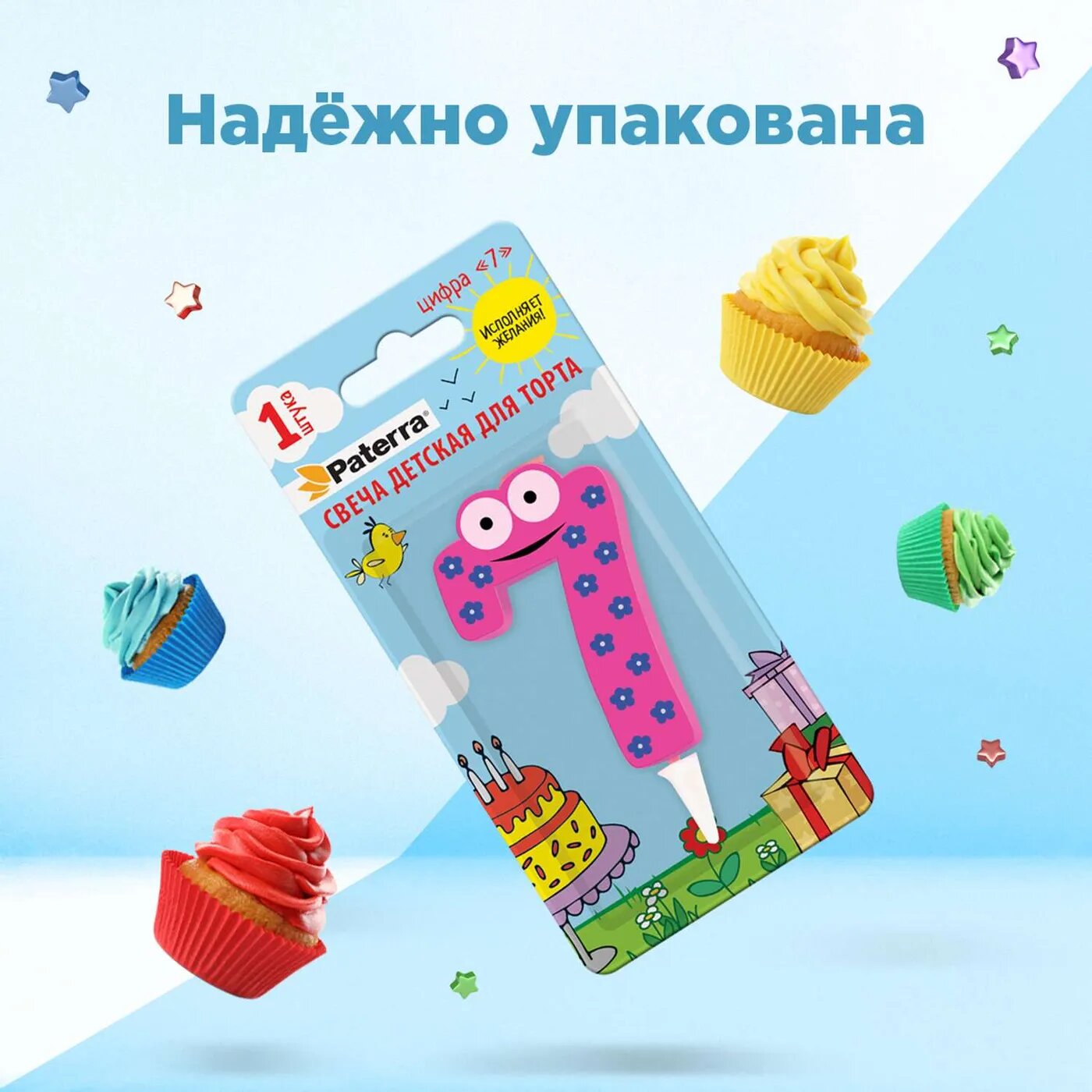 СохранитьPATERRA Свеча детская для торта цифра 7 1шт в упаковке 401-528 интересное: