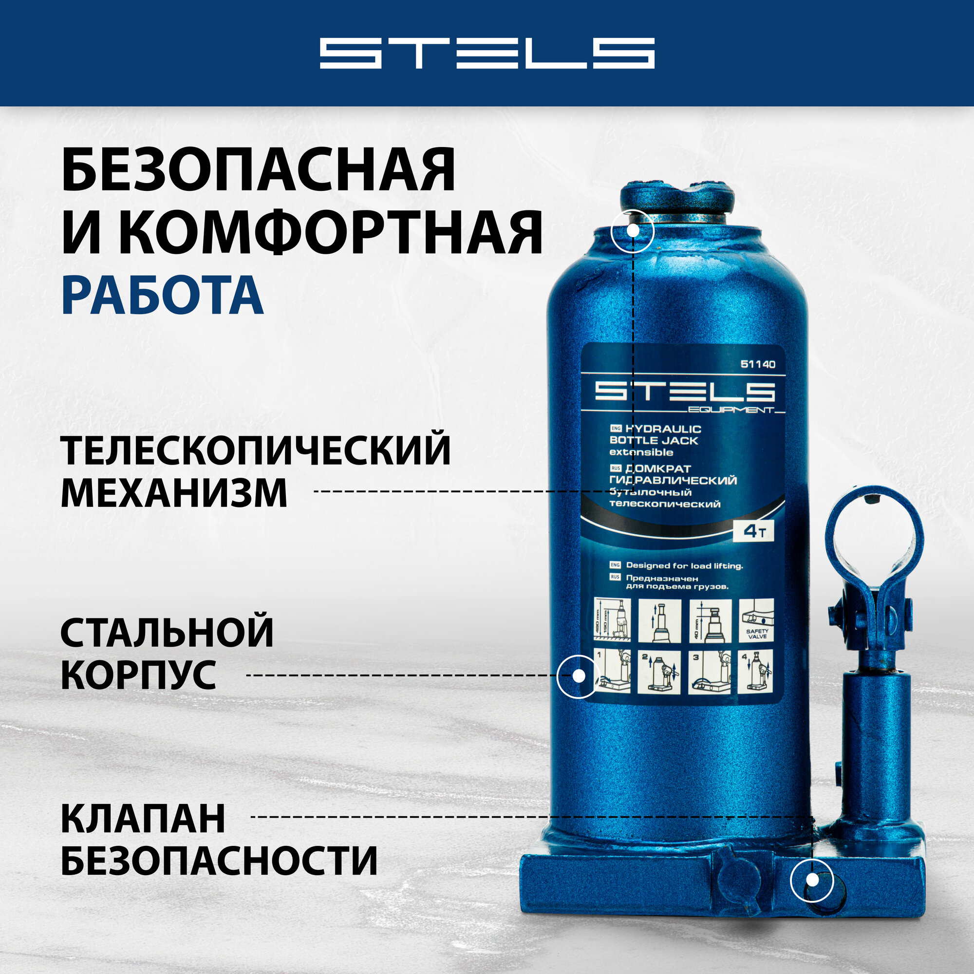 Stels Домкрат гидравлический бутылочный телескопический, 4 т, 51140 .