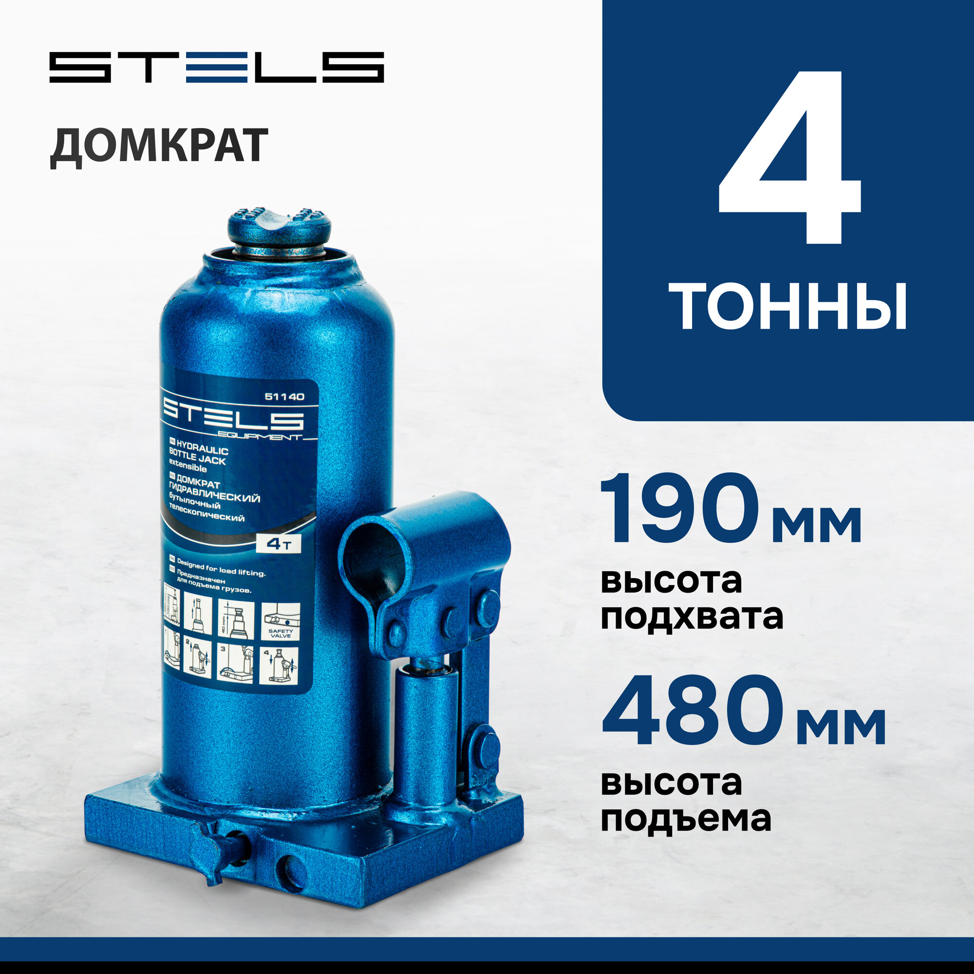 Домкрат гидравлический бутылочный STELS EQUIPMENT STELS 4 т, h подъема 190–480 мм, 51140