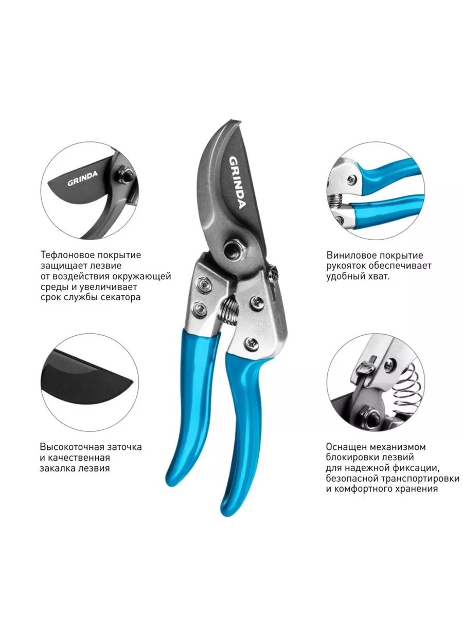 Плоскостной секатор с эргономичными алюминиевыми рукоятками 200 мм GRINDA PROLine P-25 423425