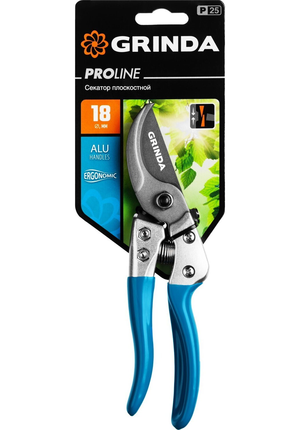 Секатор плоскостной GRINDA PROLine Р-25 с эргономичными алюминиевыми рукоятками, 423425