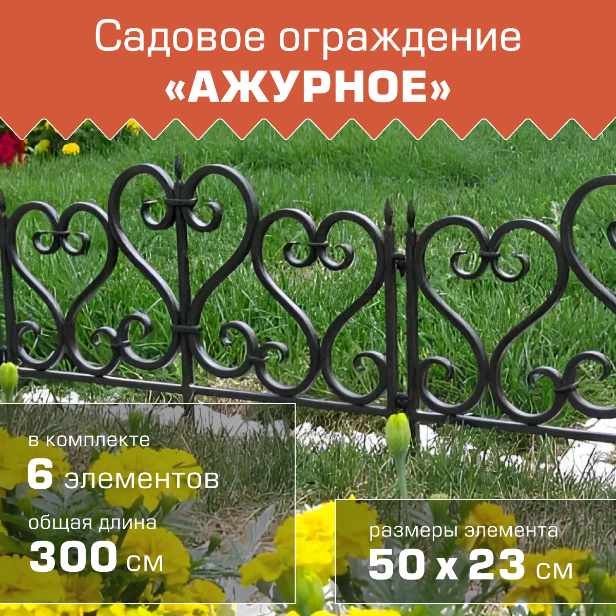 Мастерсад Ограждение "Ажурное" декоративный заборчик черный H=0,23м L=3м зсажч
