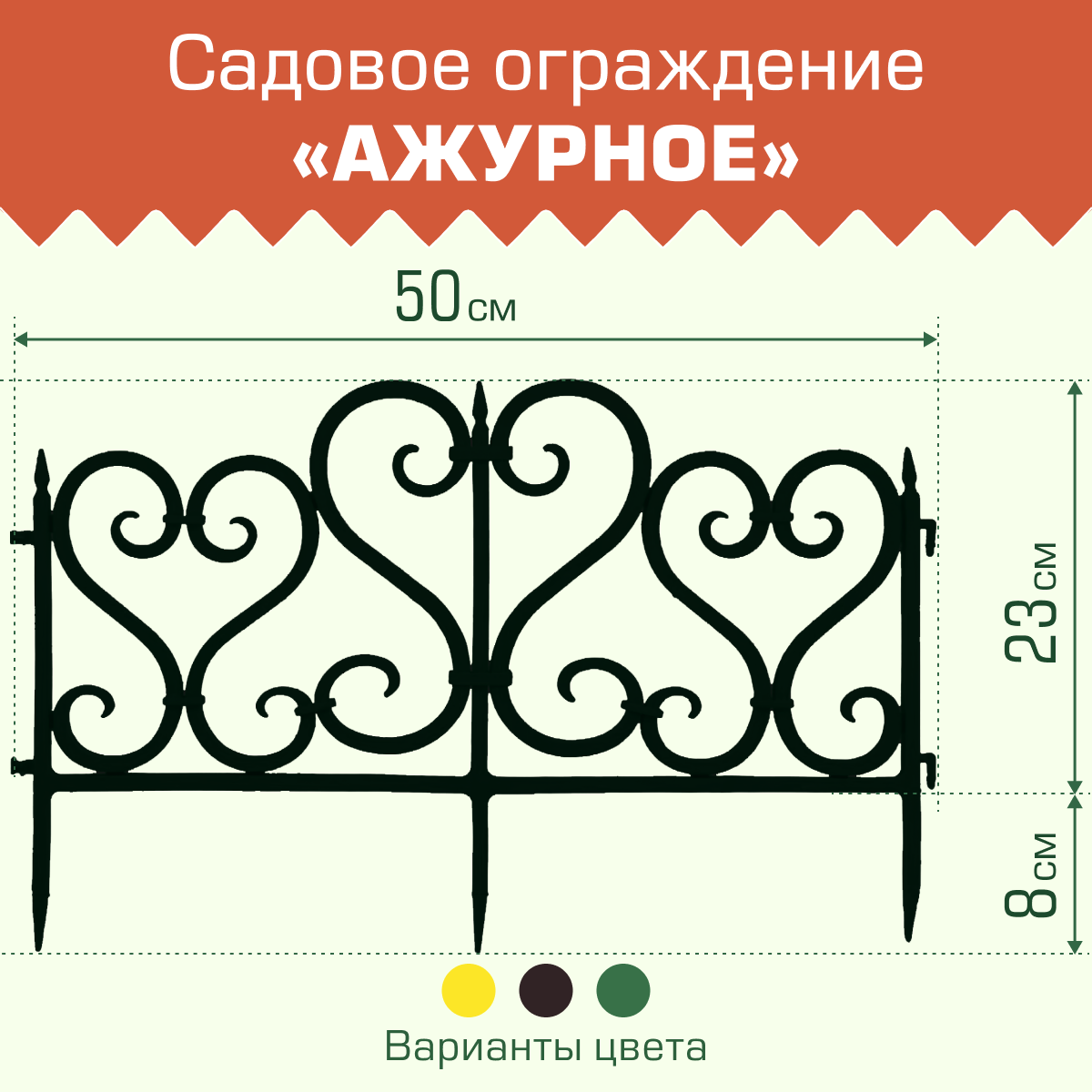 Садовое ограждение мастерсад Ажурное зелёное АЖР-зел
