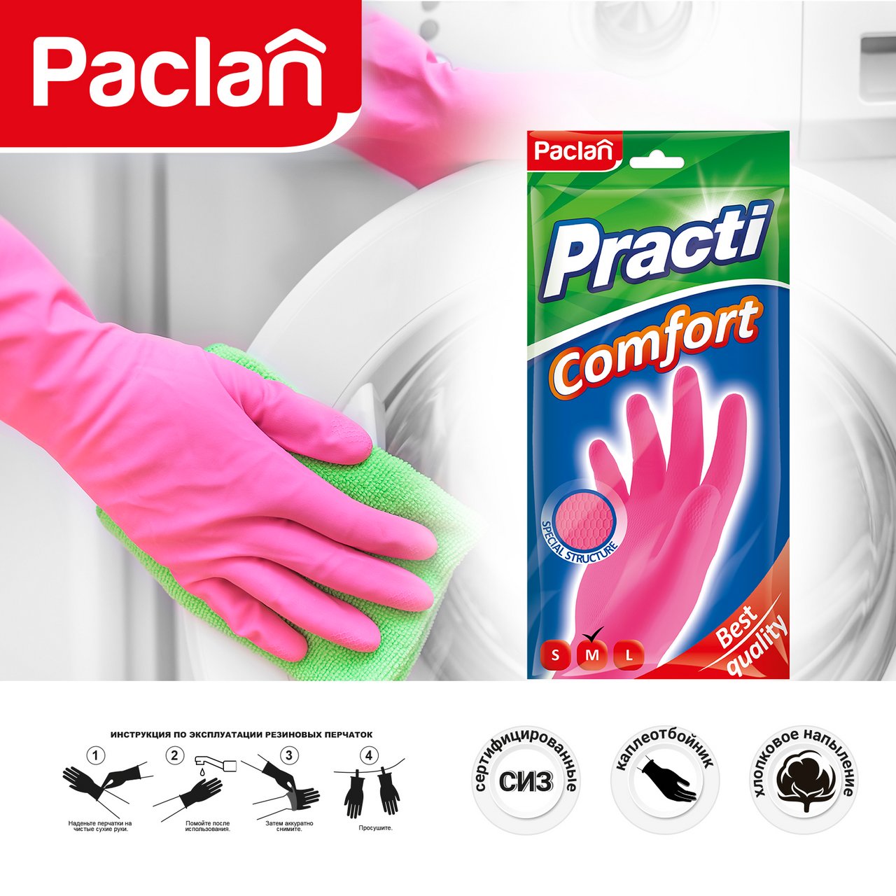 СохранитьPaclan Перчатки резиновые Comfort (M) розовые 1 пара интересное: