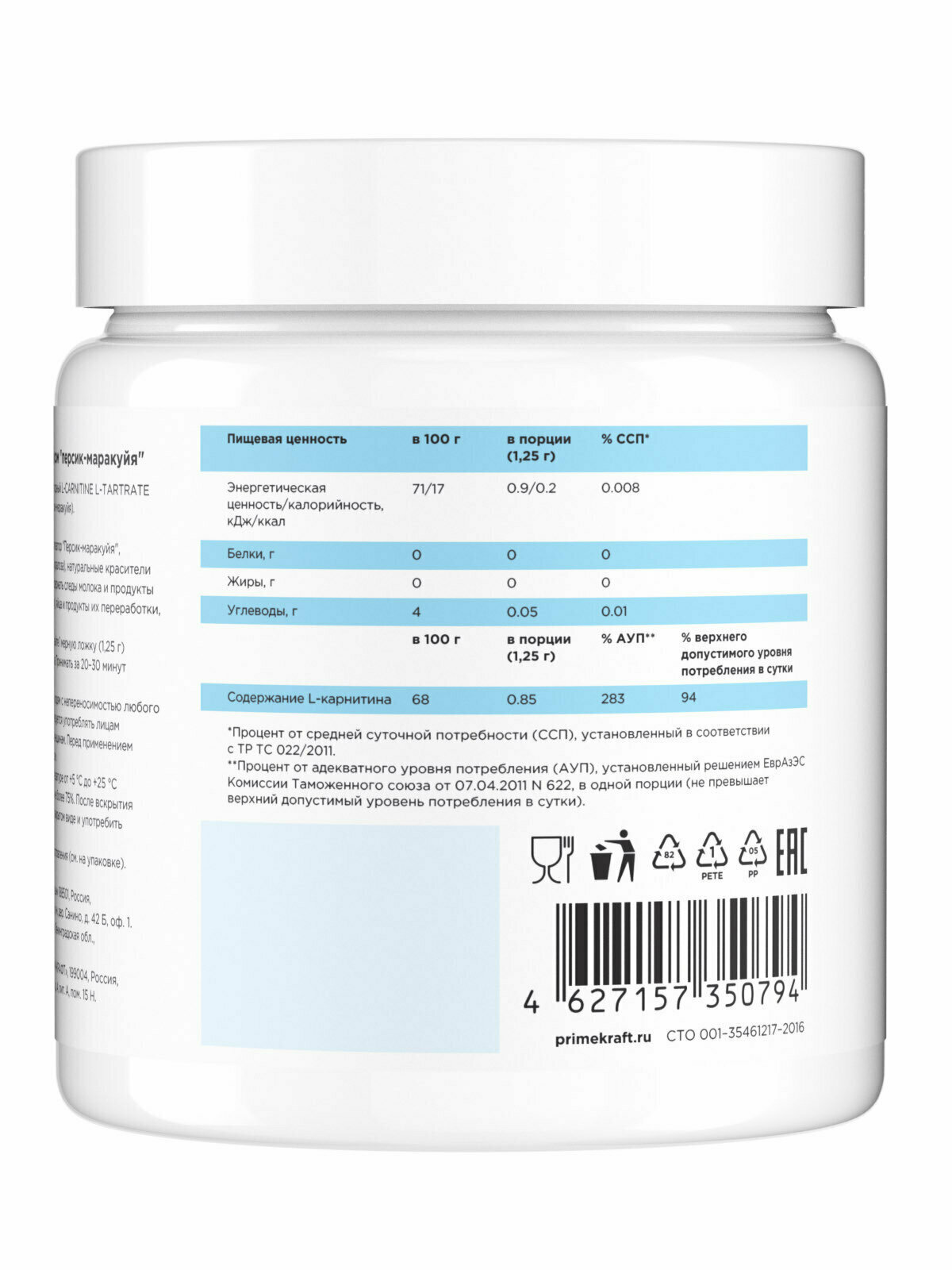 Prime Kraft L-Carnitine L-Tartrate (200гр) Персик-маракуйя
