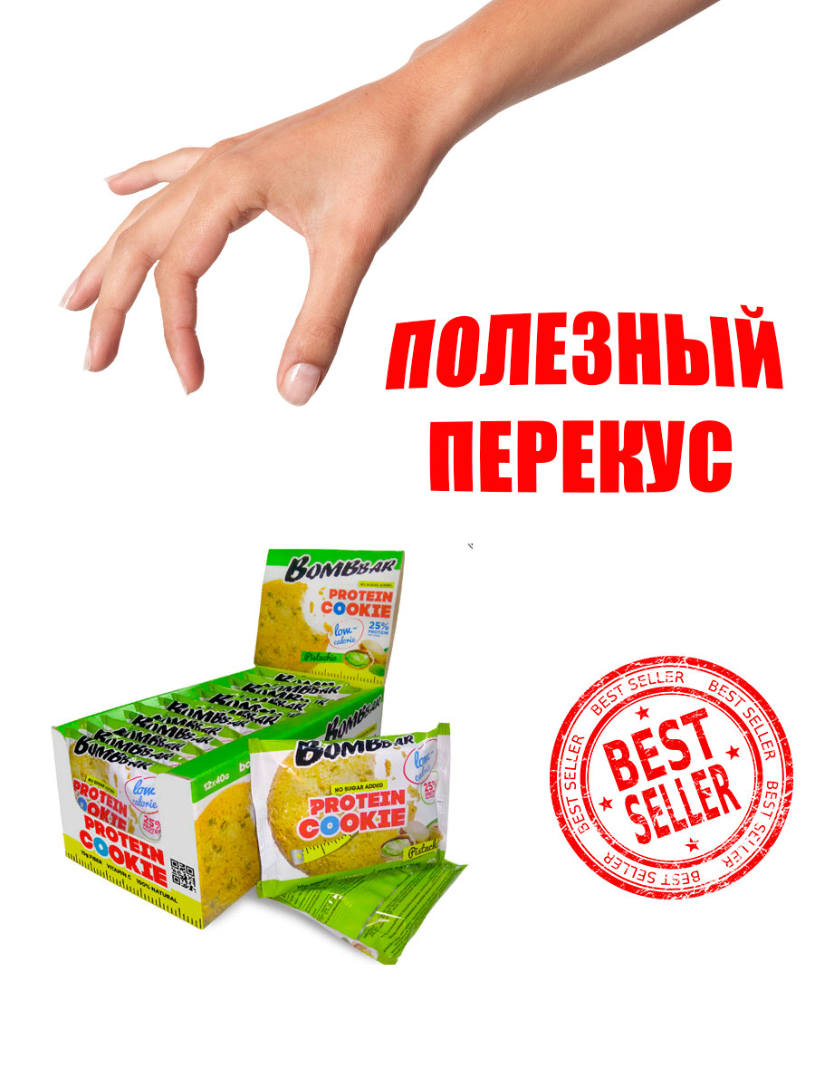 СохранитьBombbar, Протеиновое печенье, упаковка 12шт по 40г (фисташковый) интересное: