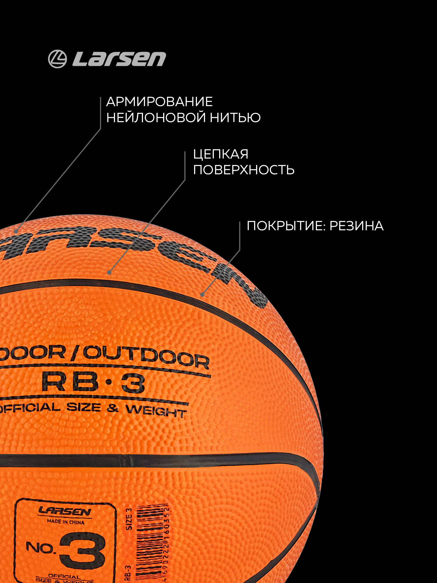 Мяч баскетбольны Larsen RB-3 (ECE) RB-3/328429 интересное: