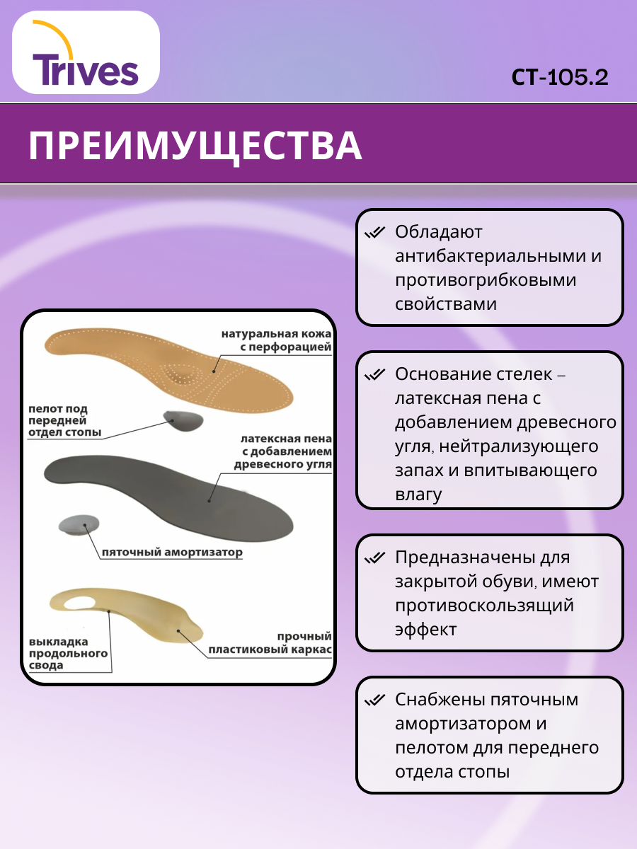 Стельки ортопедические СТ-105.1 (СТ-105) Тривес для закрытой обуви