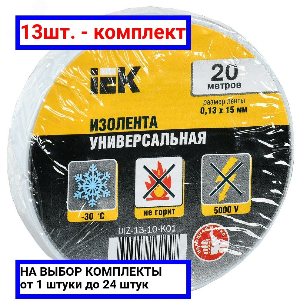 Купить 13шт. - Изолента ПВХ белая 15мм 20м / IEK; арт. UIZ-13-10-K01; оригинал / - комплект 13шт