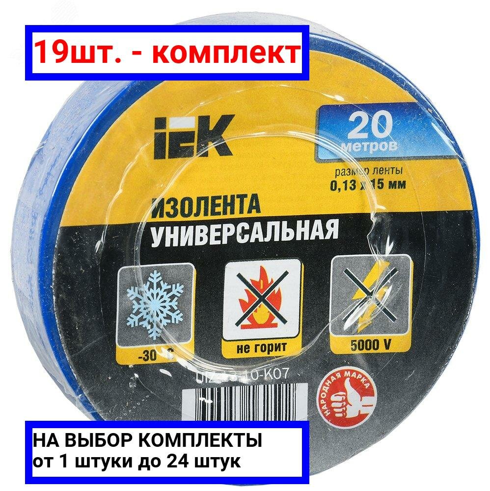 Купить 19шт. - Изолента ПВХ синяя 15мм 20м / IEK; арт. UIZ-13-10-K07; оригинал / - комплект 19шт