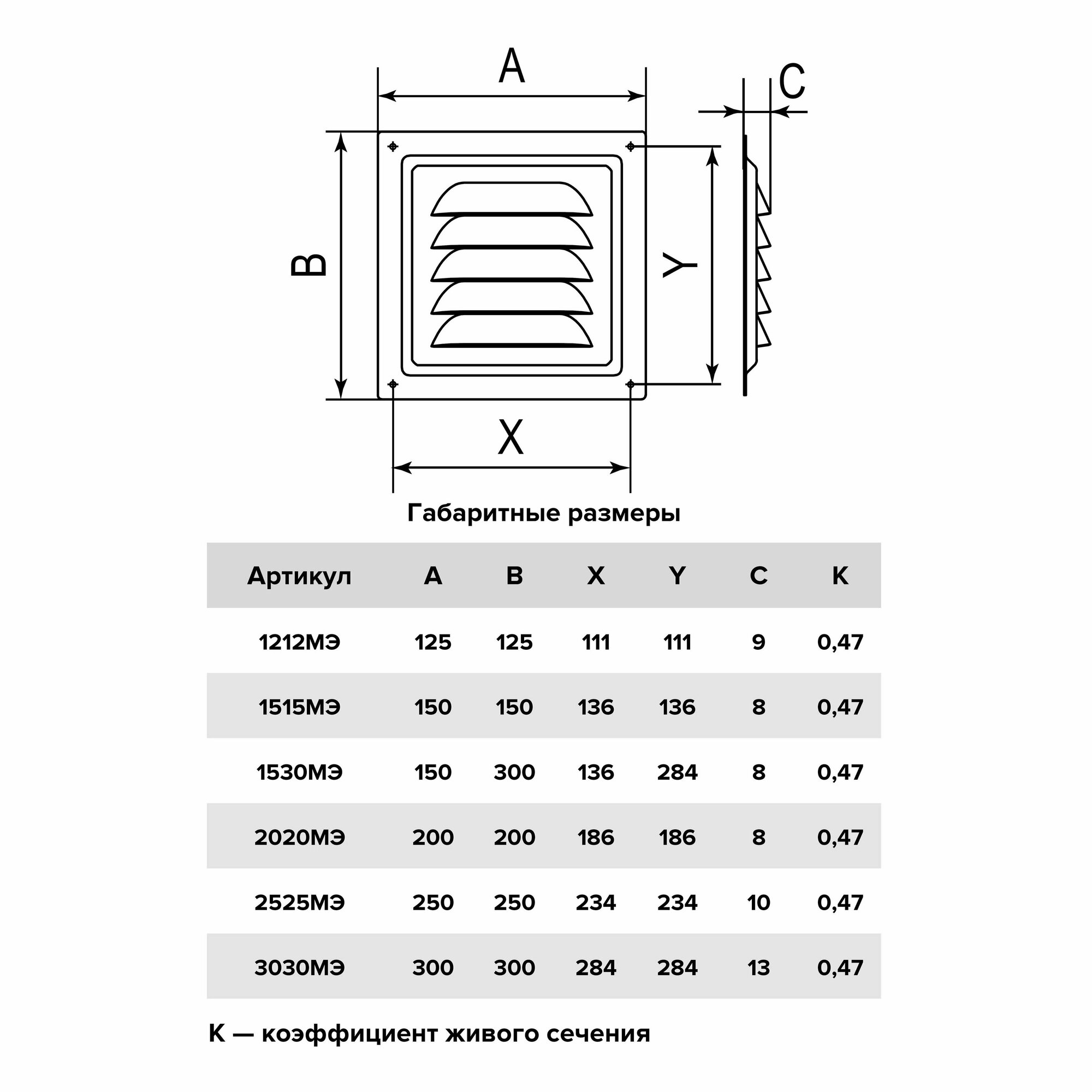 Вентиляционная решетка ERA 2020МЭ 200 x 200 мм