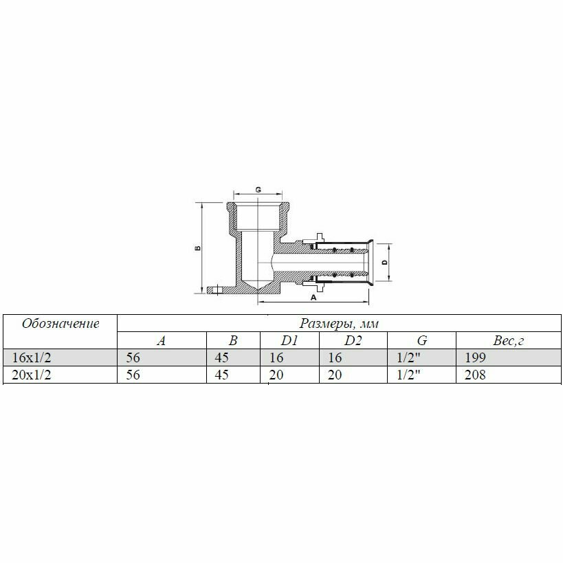 VTm.234 Тройник пресс с двумя выхода с крепл. 16х1/2'' вн