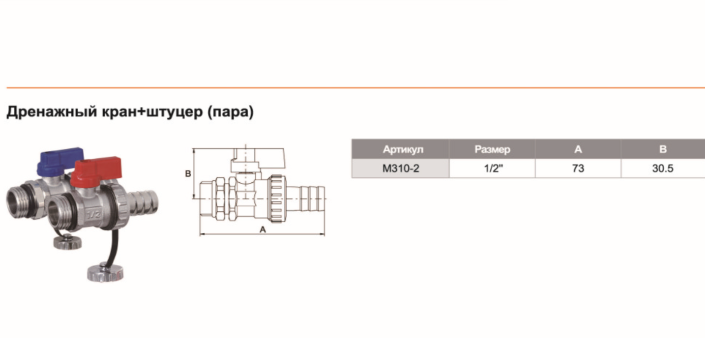 СохранитьКран шаровой дренажный со штуцером и заглушкой (пара) 1/2" TIM арт. M310-2 интересное: