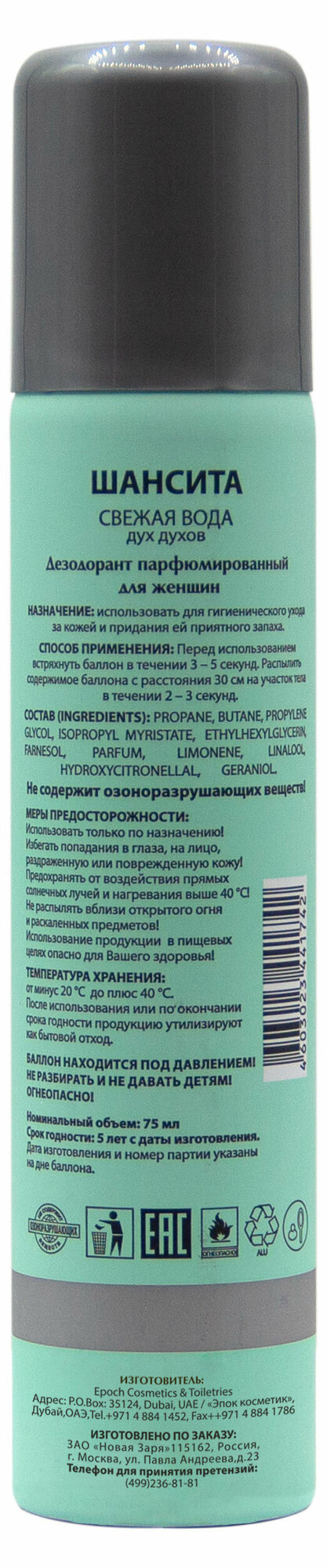 Новая Заря Дезодорант Шансита Свежая вода, спрей, аэрозоль, 75 мл, 1 шт.