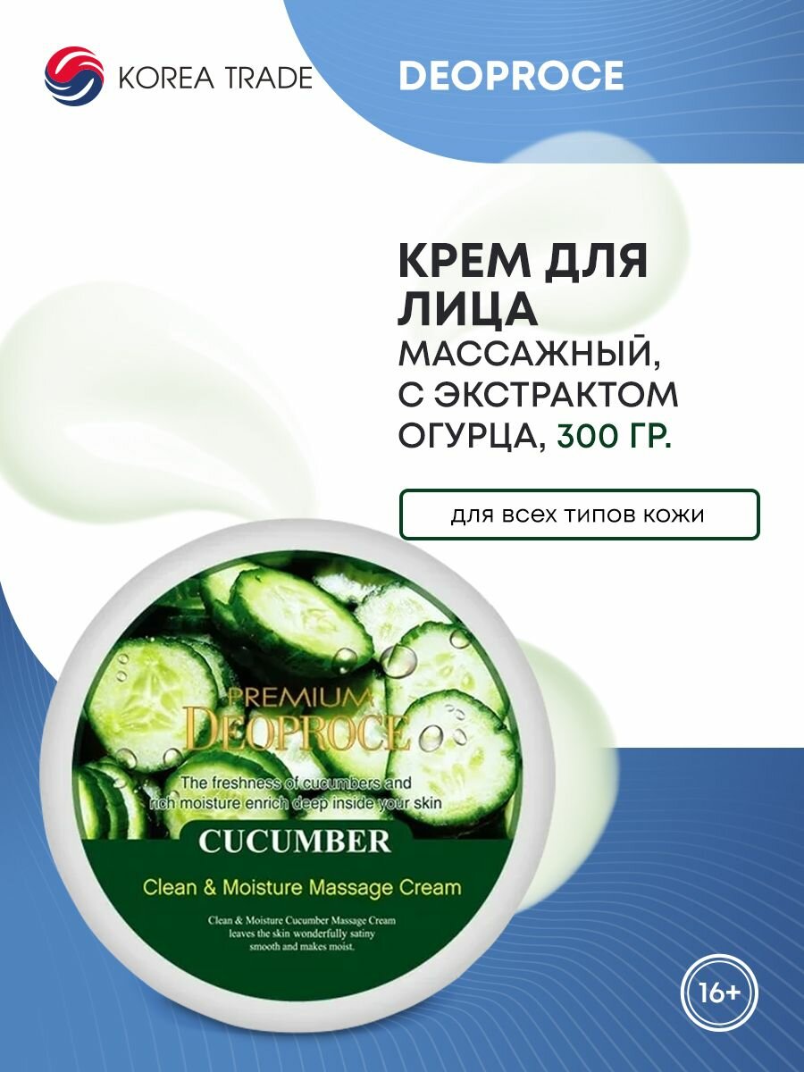 Крем массажный С экстрактом огурца DEOPROCE PREMIUM CLEAN & MOISTURE CUCUMBER MASSAGE CREAM 300G 300G.