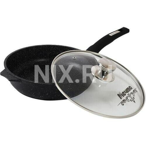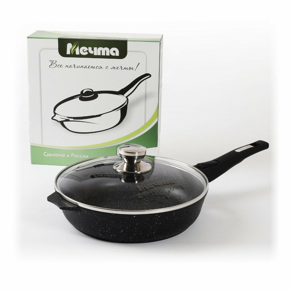 мечта с26802 гранит black 26см с несъемной ручкой и стекл. крышкой сковорода