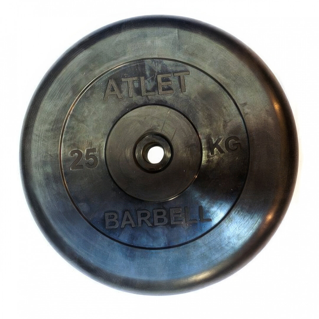 Диск MB Barbell Atlet обрезиненный, чёрного цвета, 31 мм, 25 кг