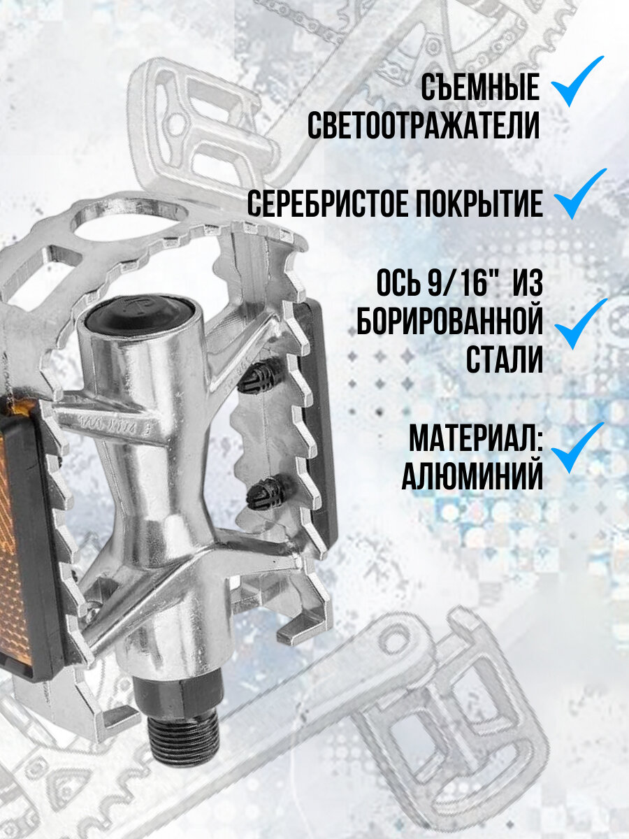 Педали Feimin FP-961Alu, 106х77мм, база алюминий, стальная ось, рамка алюм, 377гр, серебристые H000013475