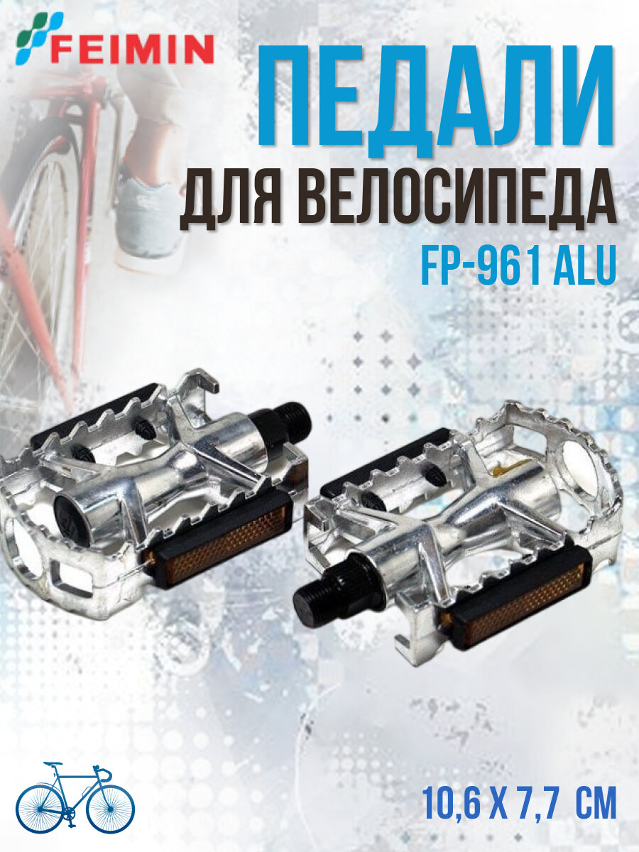 Ниже Вы можете прочитать отзывы на Педали велосипедные Feimin FP-961 Alu, 106*77мм -серебристые, ознакомится с подробными характеристиками, посмотреть интересные обзоры и фотографии на Педали велосипедные Feimin FP-961 Alu, 106*77мм -серебристые.