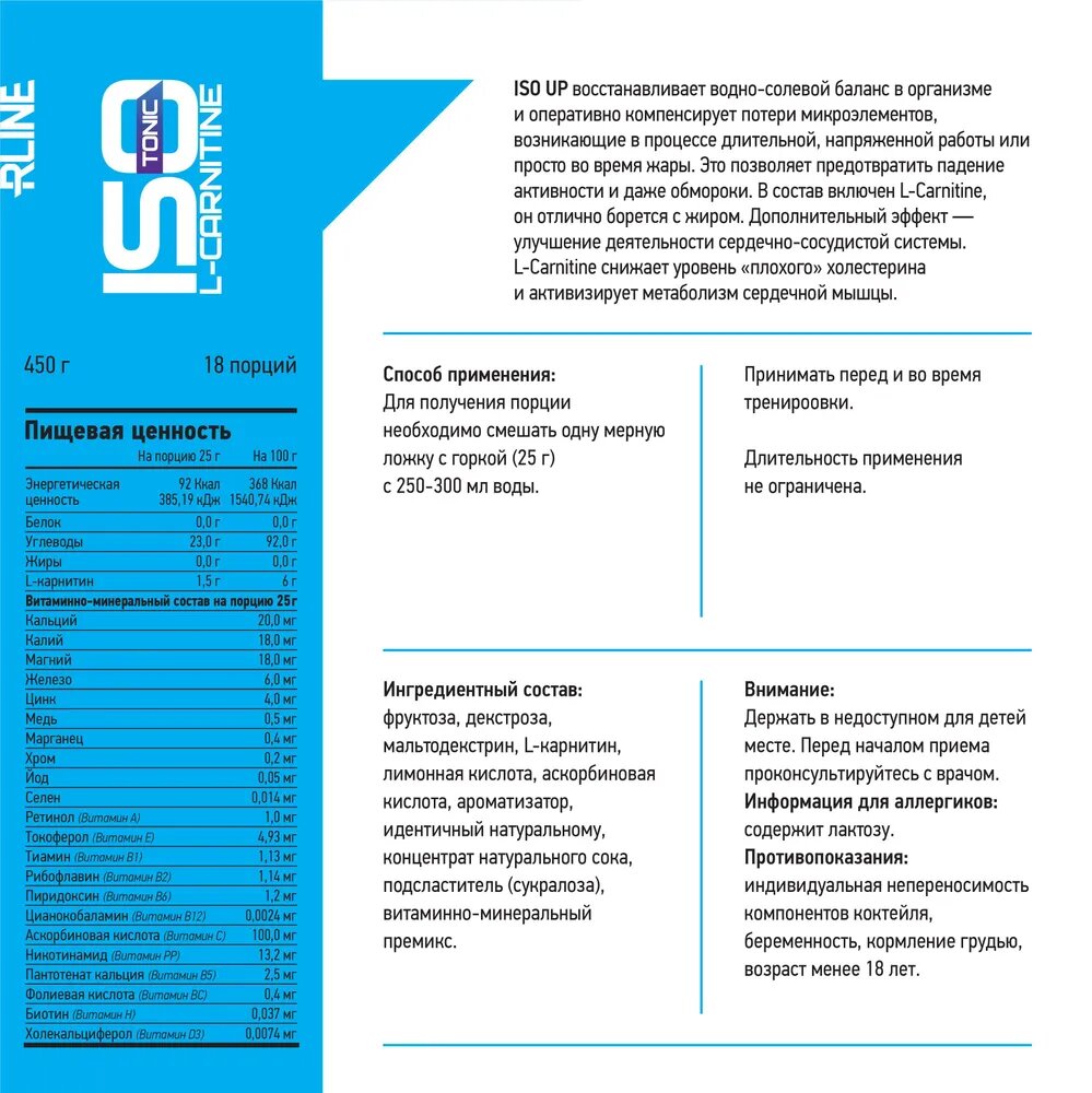СохранитьИзотоник + L- карнитин RLine ISOtonic L-Carnitin, лимон, 450 гр. спортивный напиток для похудения + витамины интересное: