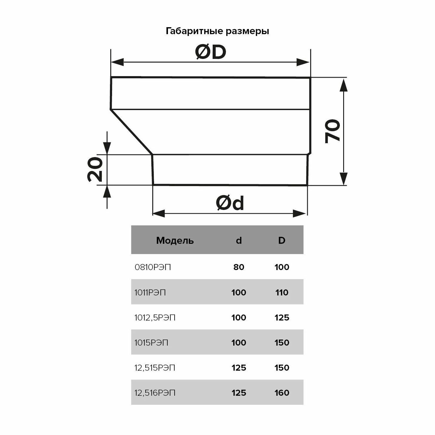 1011РЭП, Соединитель эксцентриковый круглого воздуховода с круглым пластик D100/110