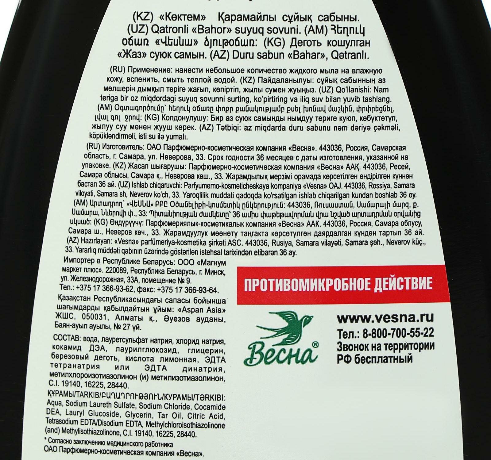 Весна дегтярное жидкое мыло хорошего, я купила 39 руб. |