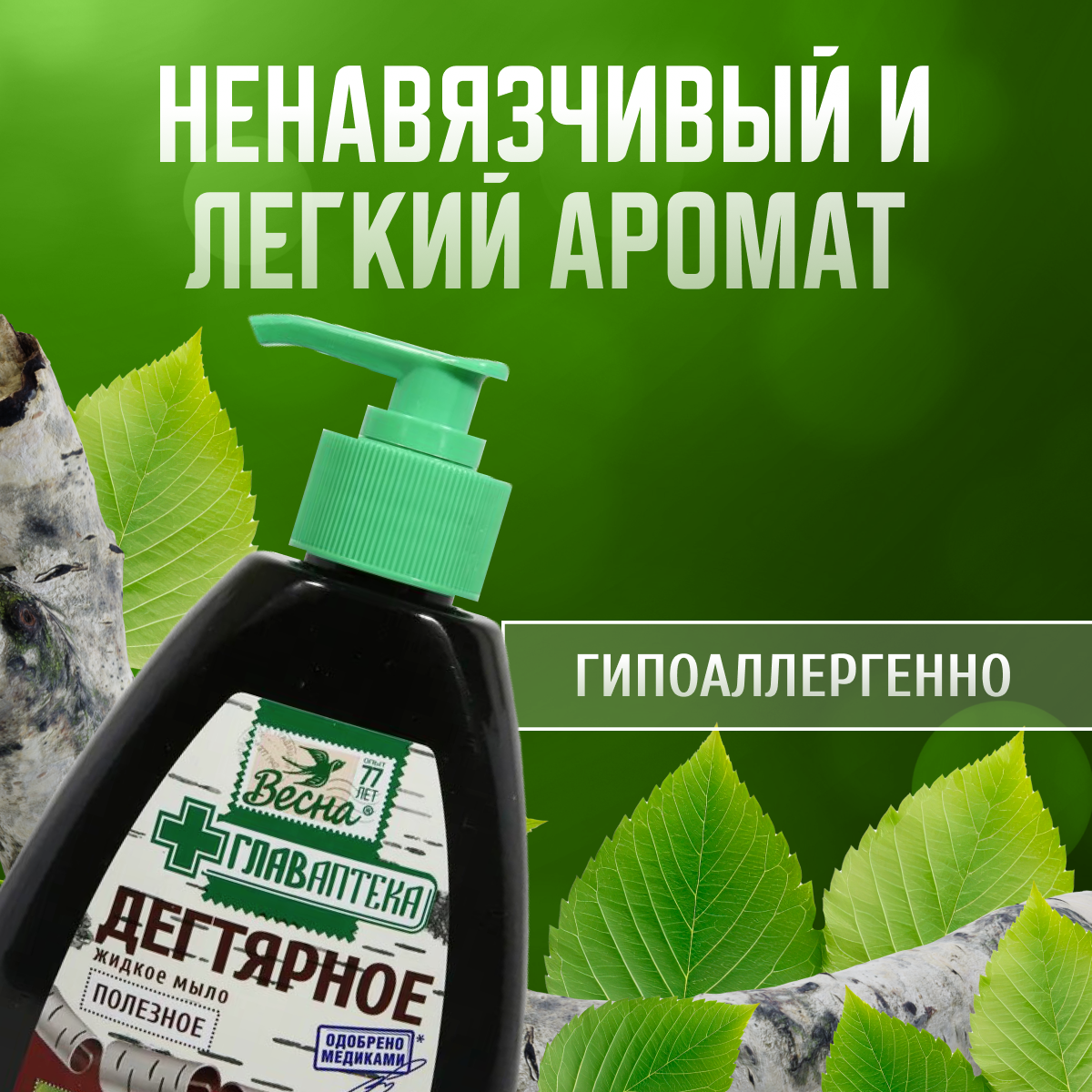 ПКК Весна Главаптека мыло дегтярное жидкое натуральное антибактериальное для рук для лица для тела 280 г 4 шт