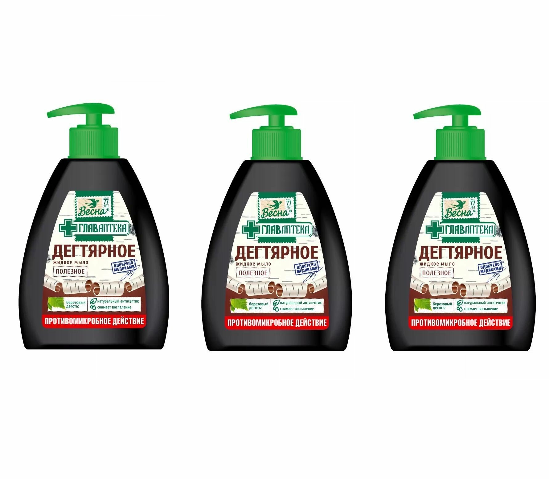 Весна Жидкое мыло Главаптека, Дегтярное, 280 гр, 3 штуки