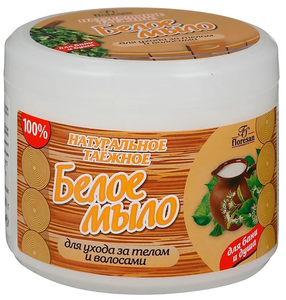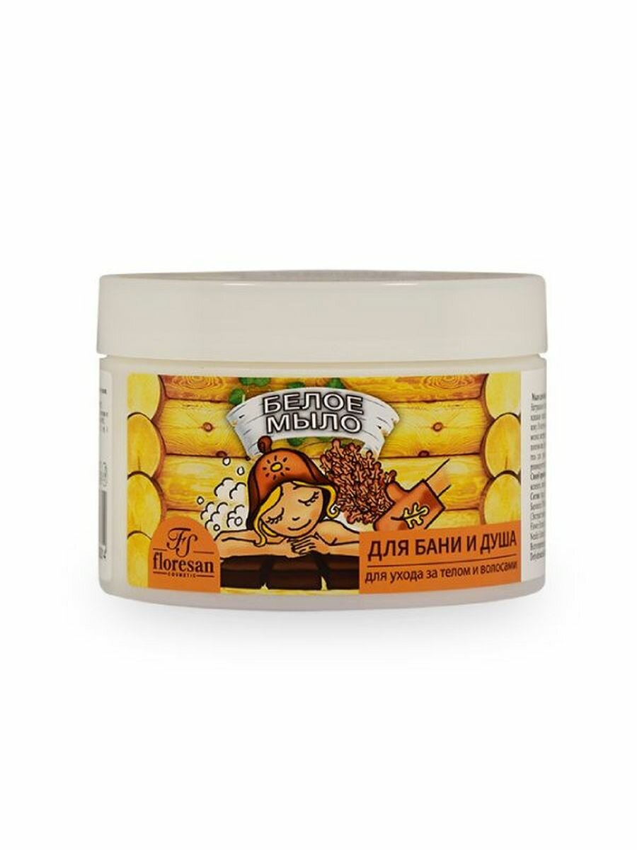 Натуральное таёжное мыло для бани и душа FLORESAN Белое, уход за телом и волосами, 450 мл
