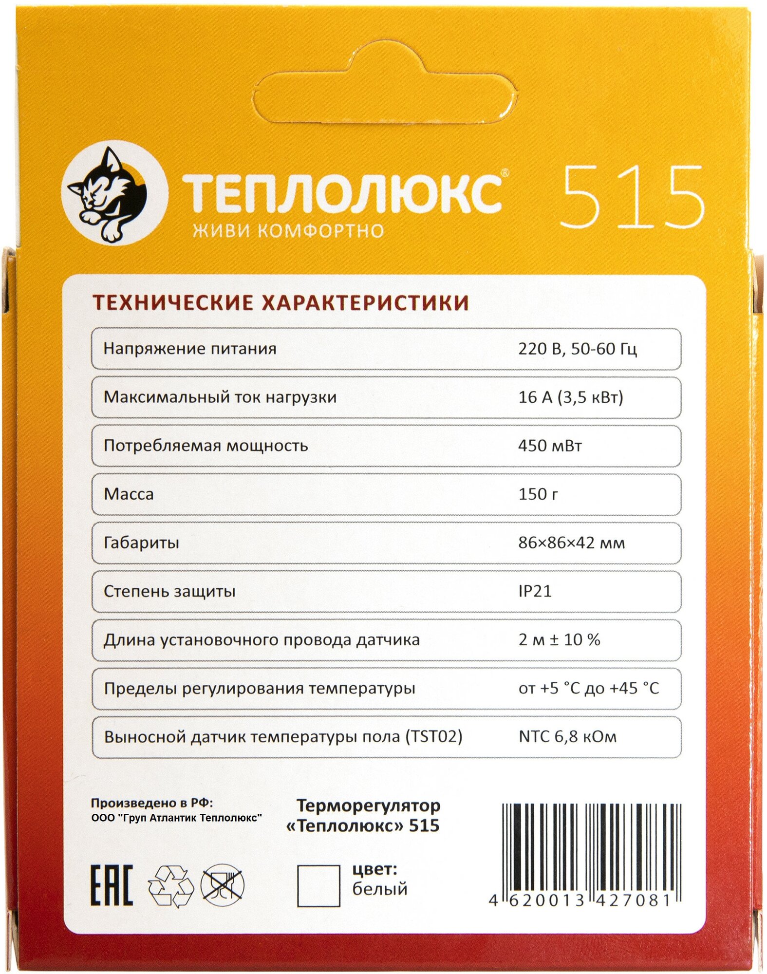 Терморегулятор Теплолюкс 515, белый, Теплолюкс 4305651417000001_(пр.ССТ) 100035575500