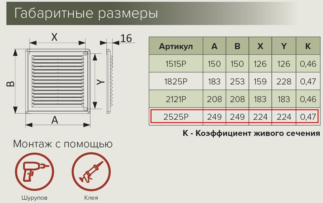 2525Р, Решетка вентиляционная вытяжная АБС 249х249, кор