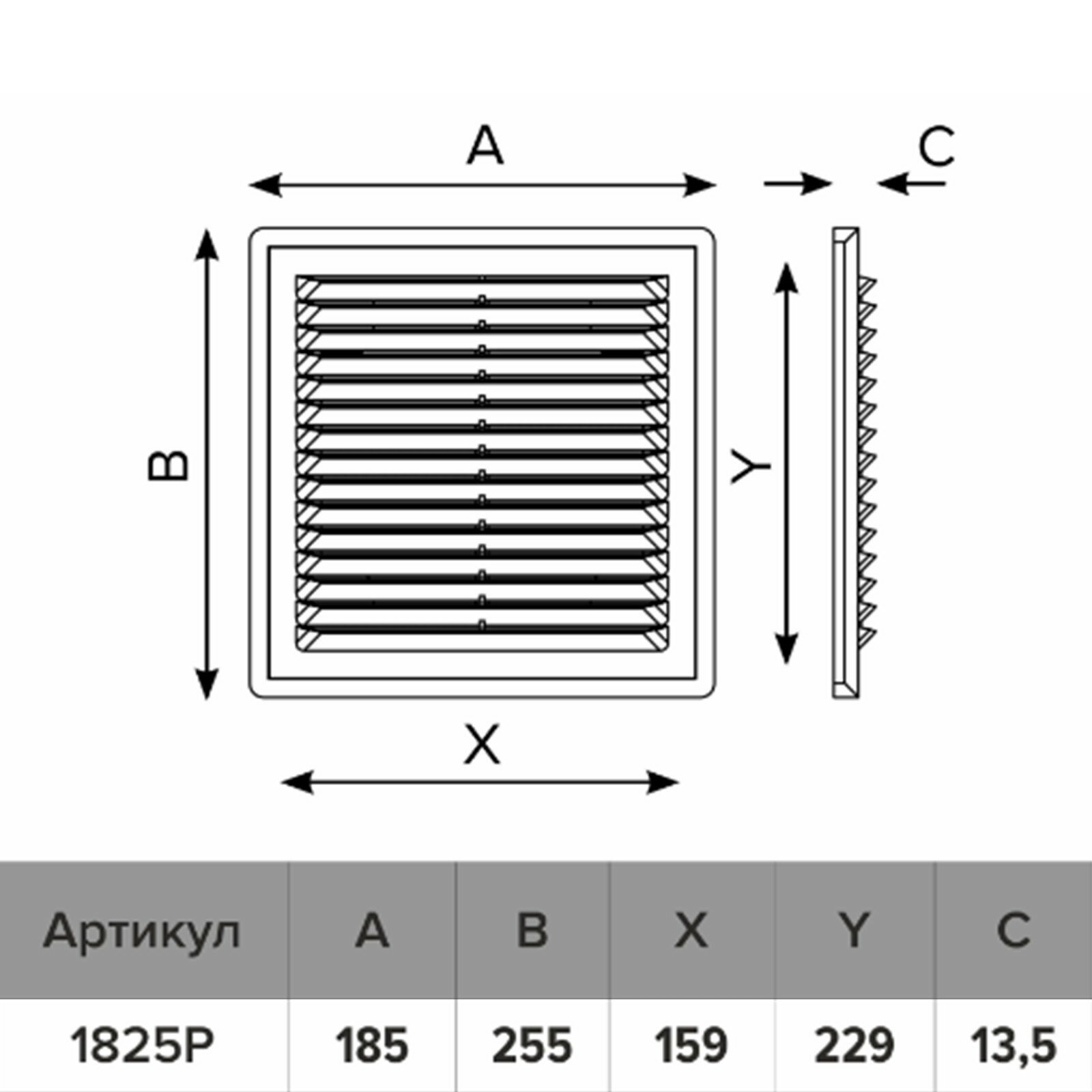 Вентиляционная решетка ERA 1825Р 253 x 183 мм белый 253 мм 183 мм