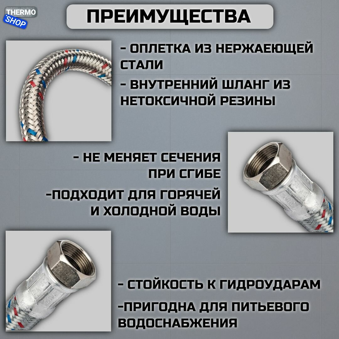 Гибкая подводка для воды ВР 3/4 х ВР 3/4, длина 1000 мм Нить сантехническая