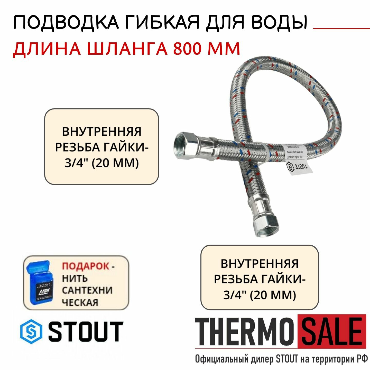 SHF-0308-182020 STOUT Гибкая подводка для воды ВР 3/4 х ВР 3/4, длина 800 мм
