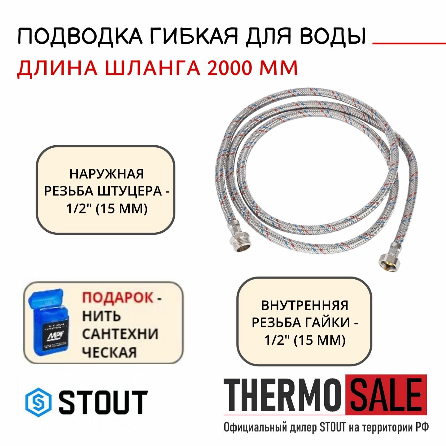 STOUT Гибкая подводка для воды НР 1/2 х ВР 1/2, длина 2000 мм
