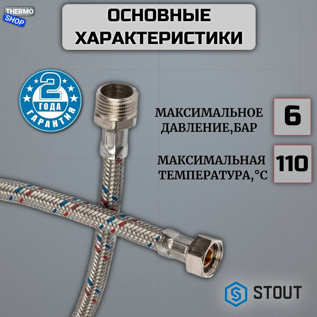 Гибкая подводка для воды Stout НР 3/4 х ВР 3/4, длина 1000 мм