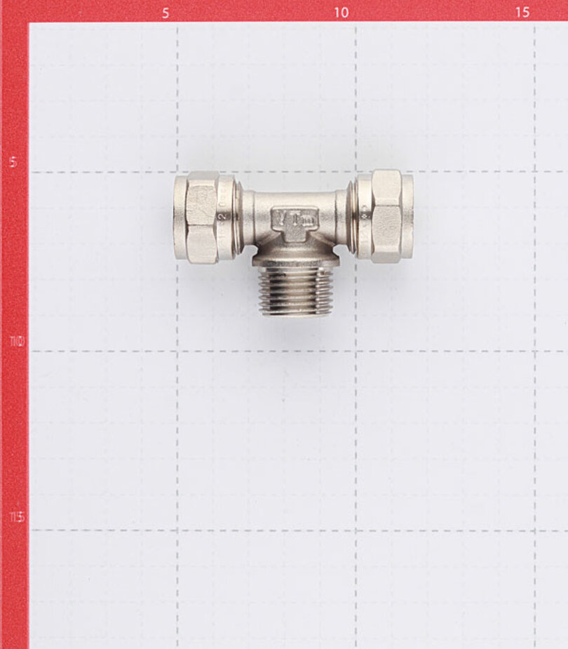 Фитинг обжимной - тройник МП с переходом на нар.резьбу 16 мм х 1/2" VTm.333.N.160416