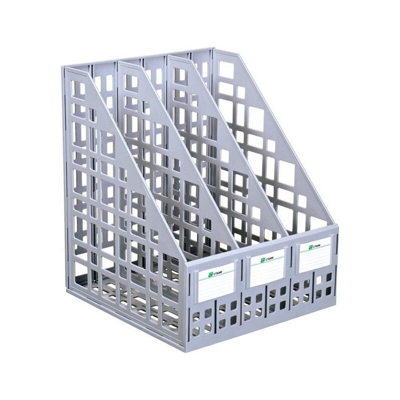 Купить Лоток для бумаг Стамм вертикальный , сборный, 3 отделения, серый