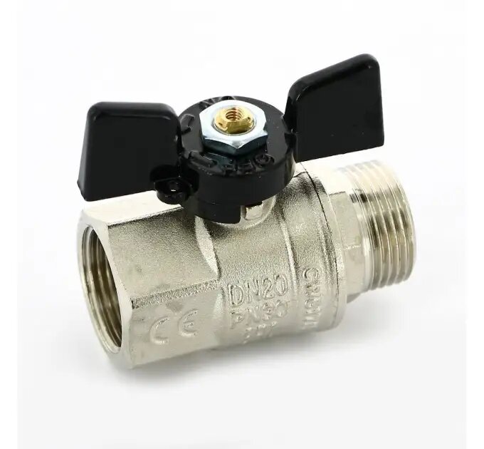 Кран шаровой резьб. 3/4", PN40, Bugatti OREGON 307, латунь, вн.р.- нар.р., с бабочкой