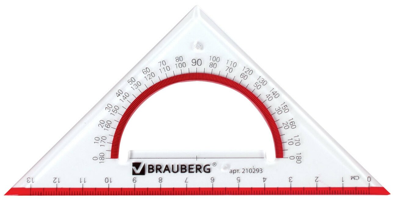 Треугольник 45°, 13см Brauberg Crystal, прозрачный, с выделенной шкалой и транспортиром (210293)