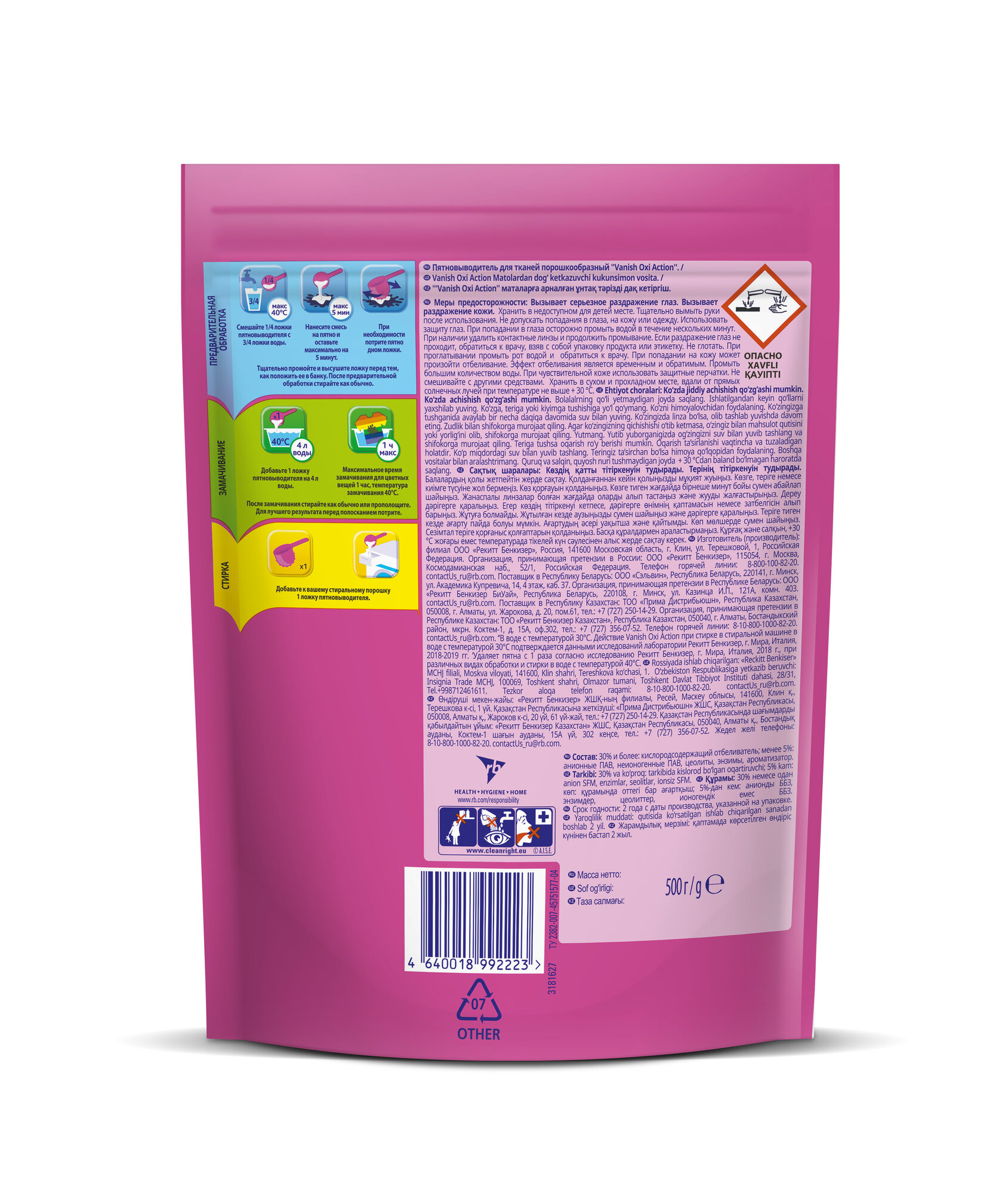 Vanish Oxi Action пятновыводитель для тканей, 500 г